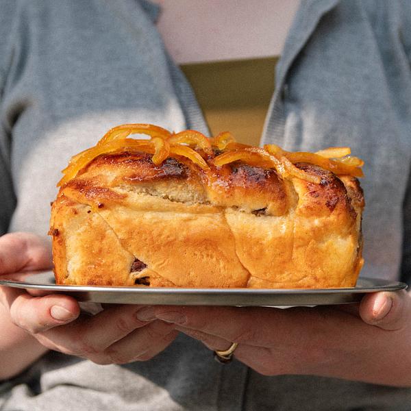 Nasz klasyczny już wypiek świąteczny: miękkie ciasto drożdżowe splecione z waniliowym twarożkiem z nerkowców i rodzynkami; po wypieczeniu oblane syropem i przyozdobione kandyzowaną przez nas skórką pomarańczową; waga: 370g.